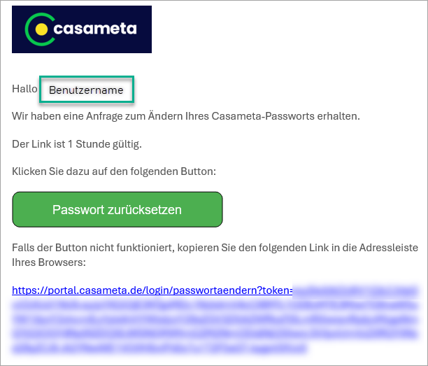 Sie erhalten im folgenden eine E-Mail, welche Sie mit Ihrem Loginnamen grüßt: