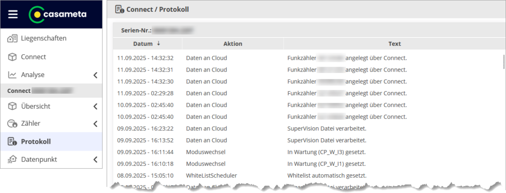 In dieser Ansicht können Sie den Verlauf aller Aktivitäten dieses Connects nachverfolgen.