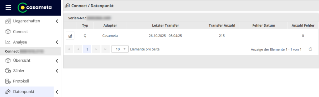 Schaltfläche “Bearbeiten” für die Bearbeitung bzw. zur Anzeige des Datenpunktes. Wechselt in die Detailansicht des jeweiligen Datenpunkts.