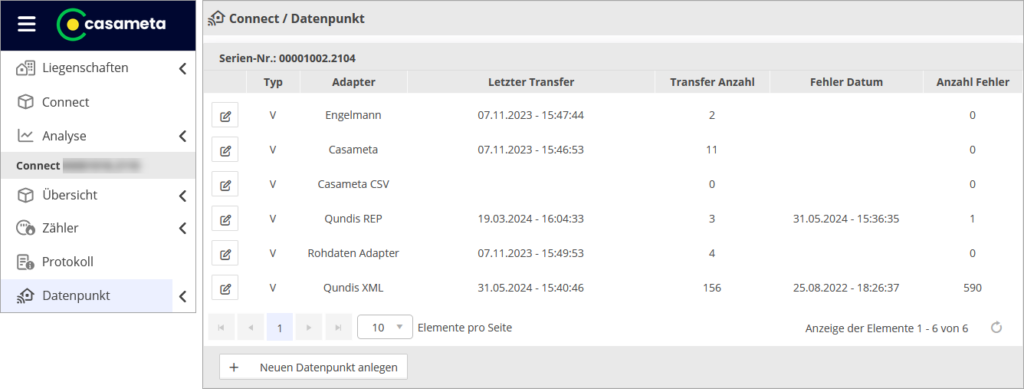 In dieser Ansicht finden sie eine Übersicht über alle für das Connect selbst angelegten Datenpunkte.