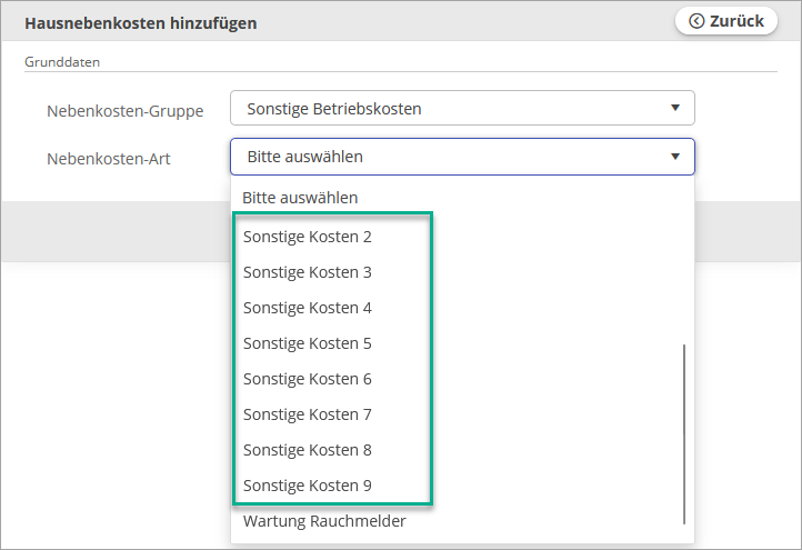 Falls Sie aber gerne gesonderte Kostenpositionen für die einzelnen Rechnungen auf der Abrechnung abtrennen möchten, so können Sie die zweite Rechnung unter einer der Positionen “Sonstige Kosten” erfassen: