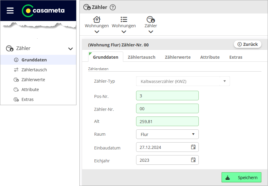 Nach einer Umstellung auf die Folgeperiode erscheint hier (bei Relativzählern) automatisch der Endzählerstand der vorangegangenen Abrechnungsperiode.