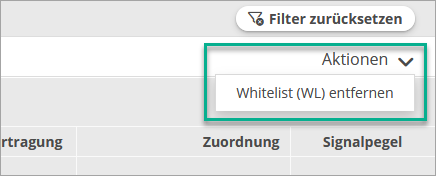 Die Whitelist kann in der Zählerübersicht “Zähler / Status” entfernt werden, indem im Aktionsmenü “Whitelist (WL) entfernen” ausgewählt wird: