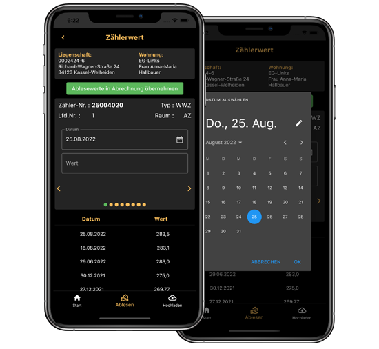 Neben der automatischen Übertragung der Zählerwerte können Sie als Ableser oder auch der Mieter selbst die Zähler mit der Casameta-App manuell ablesen.